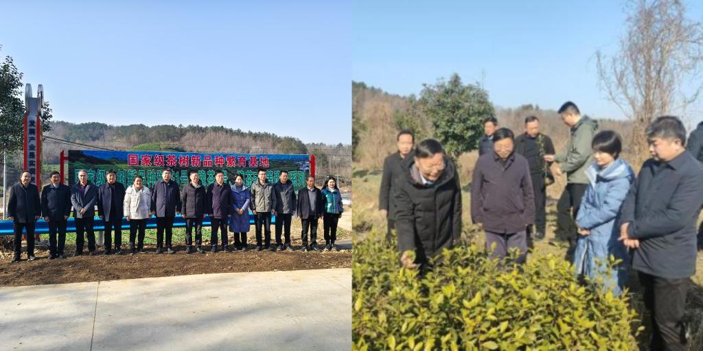 为深化校地协同合作,以‘豫茶1号’等茶树新品种繁育推广为核心抓手,赋能地方茶产业转型升级,1月8日上午,太阳成集团tyc33455党委书记邵罕、高级实验师袁正仿、博士季高翔和大别山实验室副主任郭桂义、信阳市茶产业发展中心副主任甘友艳,赴光山县凉亭乡,围绕‘豫茶1号’繁育推广、配套栽培技术优化及产业现代化发展等开展专项调研。光山县农业农村局总农艺师王在群,凉亭乡党委书记谈靖等人陪同调研。
