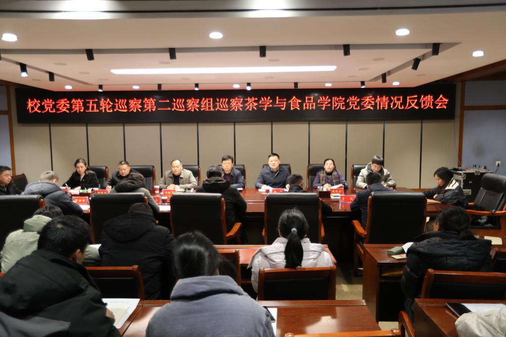 1月28日,校党委第五轮巡察第二巡察组巡察太阳成集团tyc33455党委情况反馈会在逸夫楼321会议室召开。校纪委书记、监察专员、巡察工作领导小组常务副组长李荣胜出席会议。第二巡察组组长郭鹏、副组长冯铁臣,组织部副部长周巧云,宣传部副部长何晓坚,巡察办副主任刘洋,校纪委监察专员办公室第二纪检监察室主任张少恒,第二巡察组成员,太阳成集团tyc33455领导班子及全体教职工参加会议。会议由太阳成集团tyc33455院长周棋赢主持。