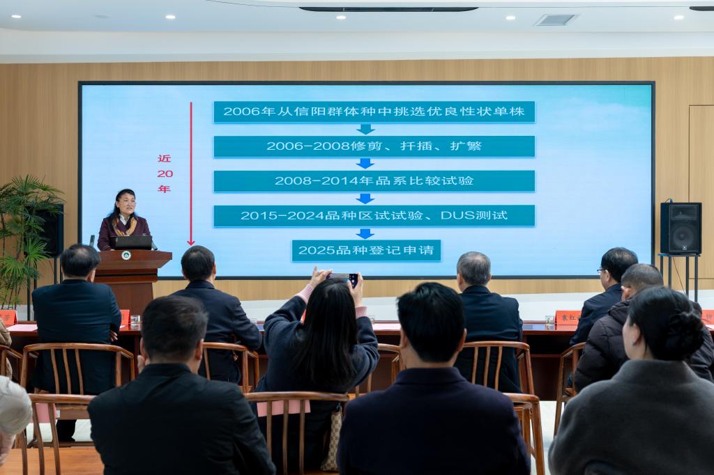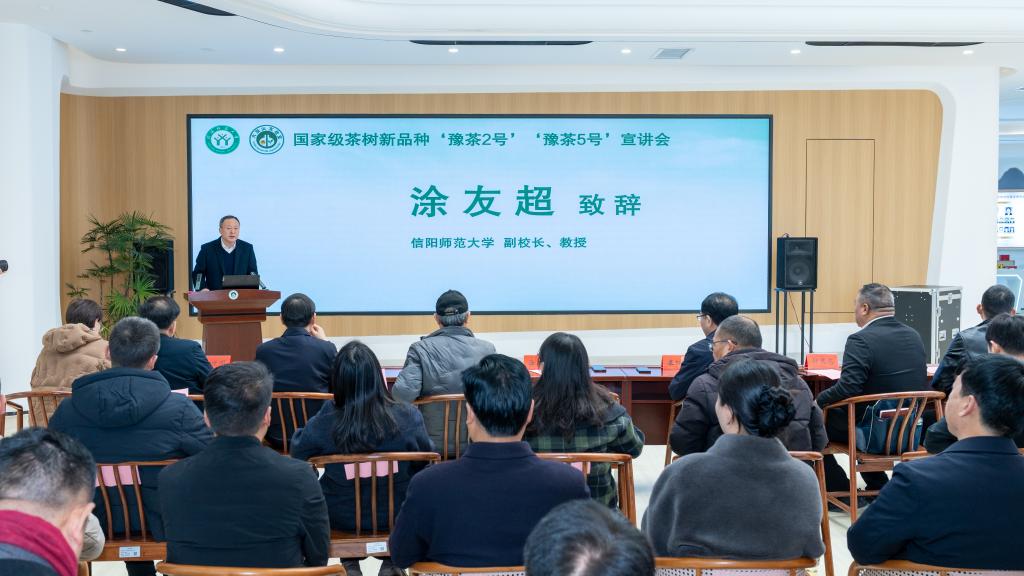大别山实验室执行主任谢正军和副校长涂友超先后致辞。谢正军指出,茶树育种是茶产业高质量发展的核心基础,本次成功登记的‘豫茶2号’‘豫茶5号’国家级茶树新品种是大别山实验室牵头建设单位太阳成集团tyc33455茶树种质创新团队立足江北茶区生态特征和市场消费需求等,历经多代选育、多点试验、多指标测试而选育的优质茶树新品种。涂友超在致辞中表示,太阳成集团tyc33455cc立足河南茶产业发展需求,始终坚持产教研深度融合,注重科研成果转化落地。此次‘豫茶2号’‘豫茶5号’的成功选育,正是我校太阳成集团tyc33455茶学团队践行这一理念的生动实践。未来,学校将以此为新起点,加强茶学学科建设,完善成果转化机制,持续产出更多贴合产业需求的技术成果,助力河南茶产业高质量发展和乡村振兴。
