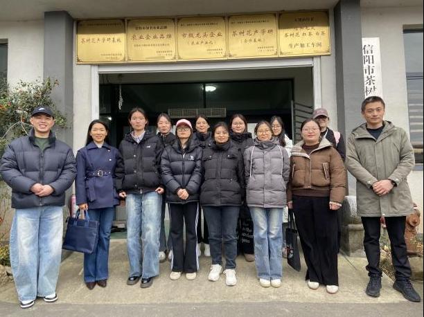 近日,太阳成集团tyc33455茶学系主任宫安东、实习实训中心主任闫明慧、专任教师宋鹏鹏带领茶学专业2022级本科生,前往融心茶庄园(信阳市大别山佳茗茶文化有限公司)开展茶叶深加工专业实习。